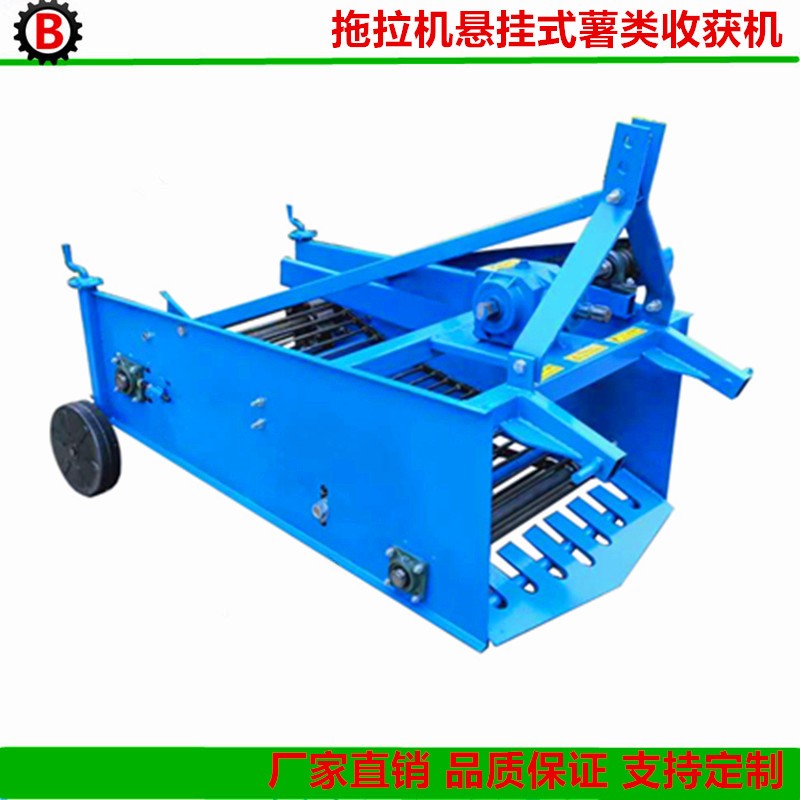 地瓜收獲機 紅薯回收機 起薯機,德州紅薯收獲機價格-禹城市賓田機械有限公司禹城市賓利機械有限公司生產的4U系列土豆/馬鈴薯收獲機通過后動力或者側動力傳動方式配套于12-60hp拖拉機。該土豆收獲機用于土豆挖掘,將塊莖部分從土壤中分離,從而使馬鈴薯脫離根莖到達地面便于拾撿。 該工作原理是在拖拉機PTO傳動下,通過振動篩震動使土壤和塊莖分離,土壤在振動篩間隙掉落,留在振動篩上的馬鈴薯則通過振動篩的震動落在后面土地上。 土豆收獲機可以直接與四輪拖拉機、手扶拖拉機配套作業。