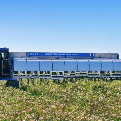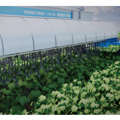 棉花智能打頂機器人VTM-09B專為棉花種植打頂場景下打造的農業機器人,配備傳感器和機器視覺 系統,能夠精準識別棉花頂芽,模仿人工打頂操作,實現高效、精準的作業。借助農藝大模型與實時環境 感知技術,動態調整打頂策略,即便在夜間也能持續作業,有效緩解了農忙期勞動力短缺的問題。