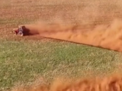 巴西大型農(nóng)場(chǎng)農(nóng)業(yè)機(jī)械除草神鞭,是農(nóng)民自己研制,用兩臺(tái)拖拉機(jī)就可以實(shí)現(xiàn)。